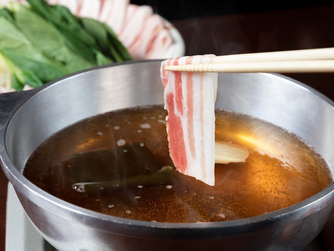 鹿児島県産黒豚を堪能できる「しゃぶしゃぶ」も登場。自慢の”黄金出汁”にサッとくぐらせてお召し上がりください。