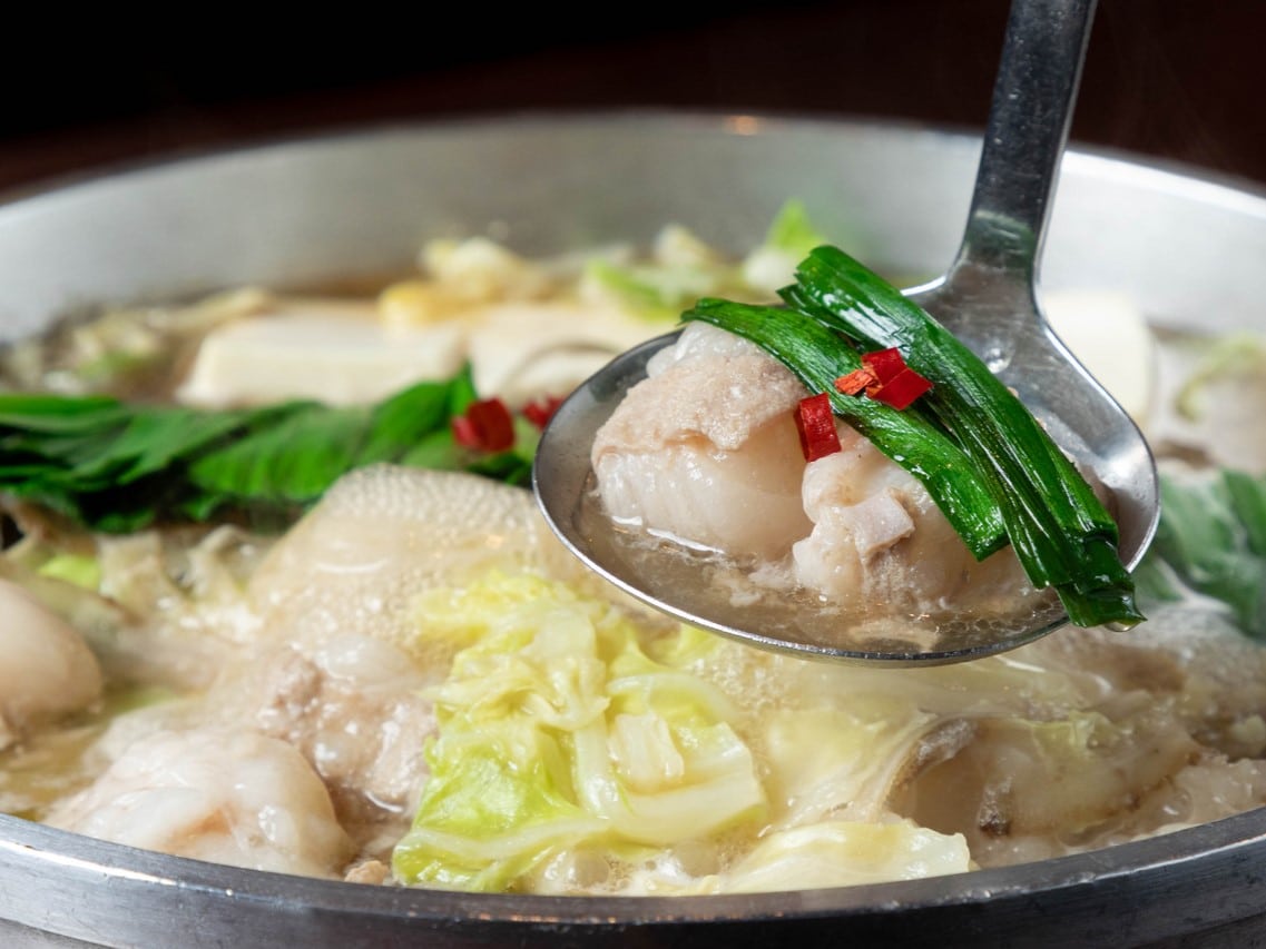 芋蔵の「もつ鍋」は国産牛ホルモンを使用しており、鮮度も抜群!旨みたっぷり・プルプル食感をお楽しみいただけます。味は醤油・塩・味噌の3種類からお選びください。